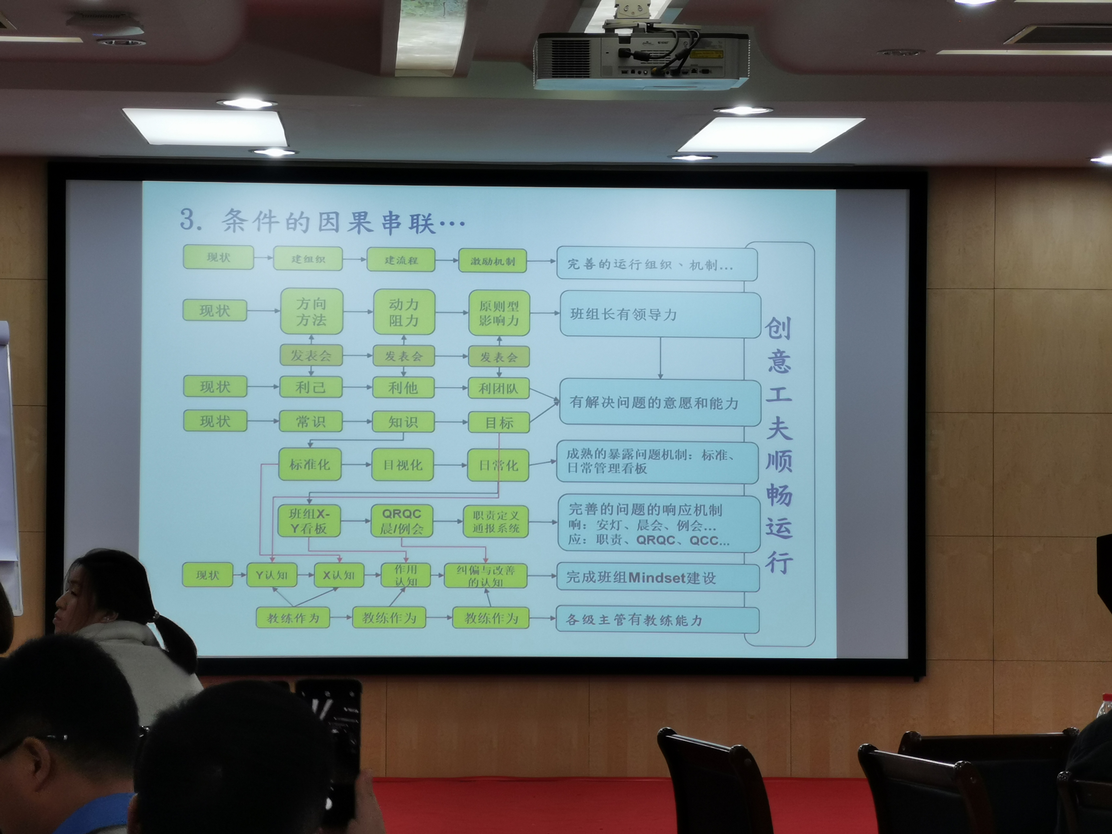 蔣維豪老師圍繞“如何規(guī)劃精益戰(zhàn)略、如何進行精益戰(zhàn)略抉擇、如何部署精益戰(zhàn)略”等三個方面詳細展開了兩天的課程,并用親身經歷、生動形象的案例逐一說明,讓課堂氣氛異?;钴S。蔣維豪老師通過F(X)=Y理論、SWOT分析、波特五力模型分析等,教大家理清因果關系,為精益找到理由,規(guī)劃企業(yè)的精益戰(zhàn)略與目標,并進行精益戰(zhàn)略抉擇;根據精益戰(zhàn)略目標,學會開架構,識別理想狀態(tài)與理想條件,借鑒豐田已有的模型或根據自身條件創(chuàng)造出自己的精益推進模型和套路,促成結果(Y)的最終實現。此外,蔣維豪老師還提供了創(chuàng)意功夫、價值流、設備效率損失、降低庫存、降低加工工時、降低材料(零件)單價等幾種精益常用課題的精益策略分析模型,為精益相關課題的深入展開提供了系統(tǒng)化的解決思路,讓全體學員受益匪淺。